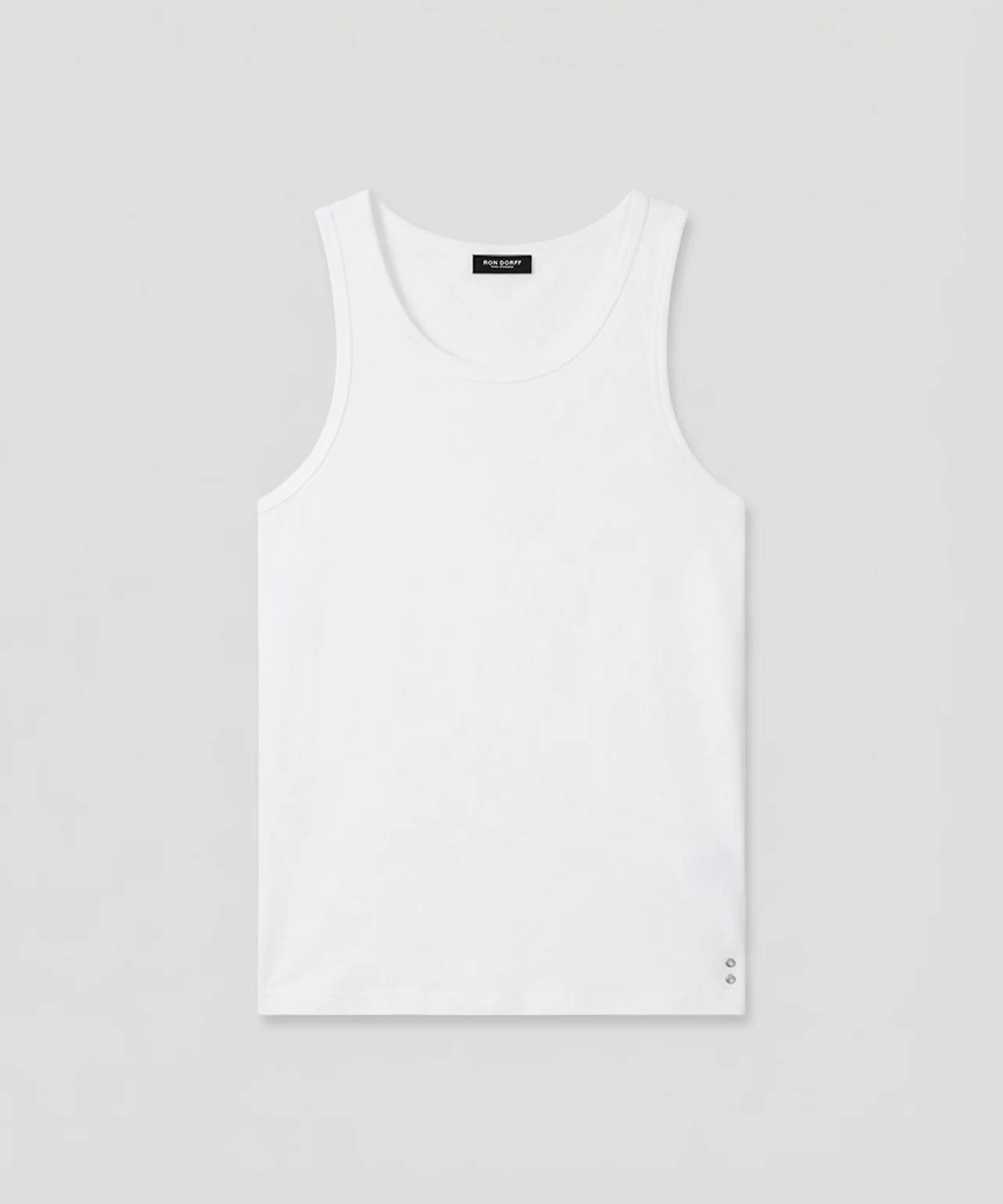 The new ribbed tank top is cut from a premium cotton blend with a hint of elastane for a close, comfortable fit. Designed with a classic rounded neckline and clean finishes, it can be worn on its own or layered. Two discrete embroidered RD eyelets tone on tone on the side. Prewashed for minimum shrinkage.