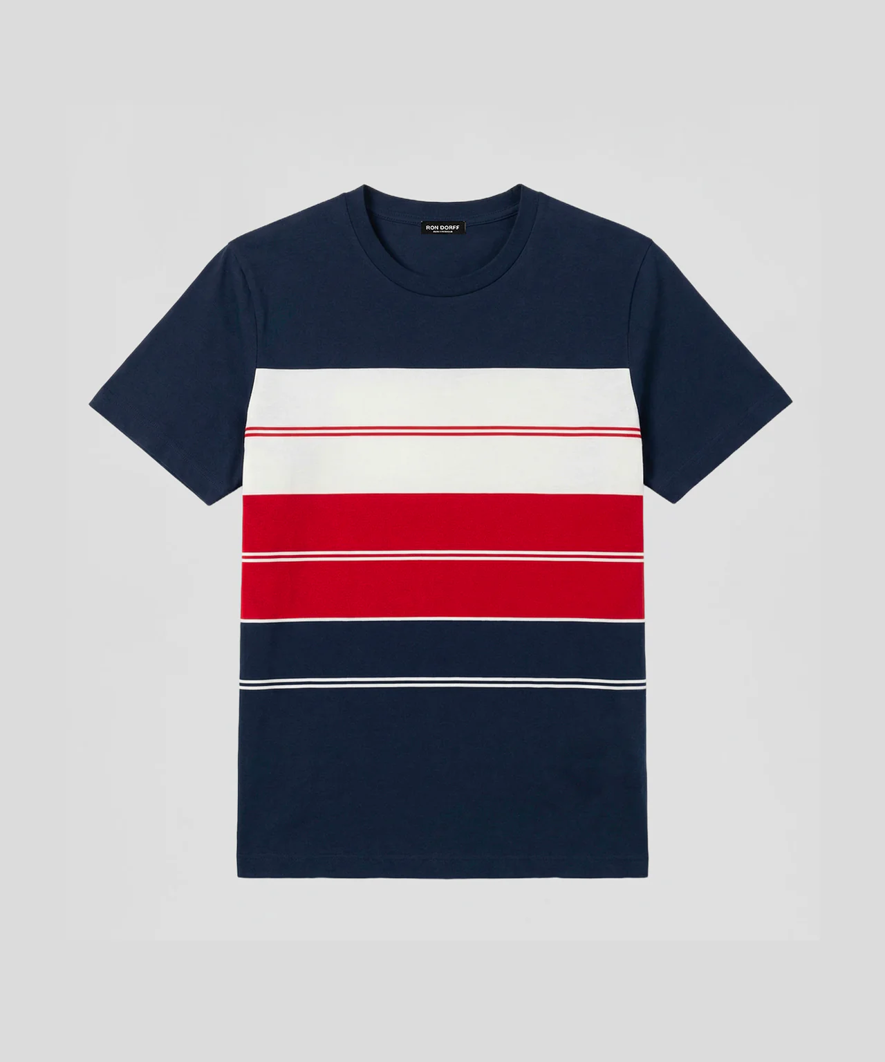 The classic RD t-shirt with irregular stripes, revisited in a 100% organic cotton. Designed with a slightly tapered fit. Crew neck with elegant binding collar for chic urban wear. Featuring the double black-lacquered RD signature eyelets on the side.